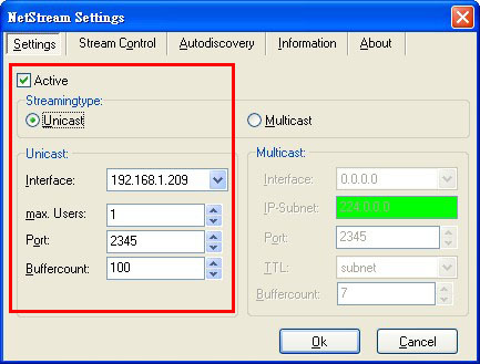按 Settings 後進行 Network Settings, 基本上只需要設定中間紅線位置. Interface 係client 機o既 IP address, Address 係 Netstream server 果部主機o既 ip address, Server Port 則為 Netstream server o既 port