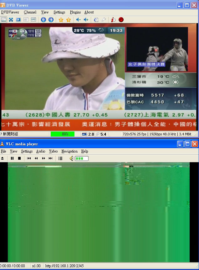 試過好幾個 Video Player 都唔可以順利播到 DVB Viewer streams 出o黍o既片段, 但可以用一個免費o既 VLC media player 播放, VideoLAN 官方網為 : http://www.videolan.org/ 下載文件 vlc-0.9.2-win32.exe (13.81 MB)