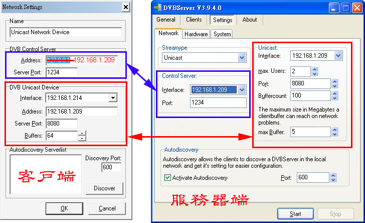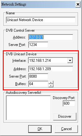 運行 DVBServer, 示範版本為 3.9.4.0 , 先進行 Network settings, 如下圖所示: