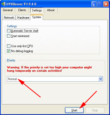 Priority 預設為 “High”, 筆者改為 “Normal”, 實際應用上無明顯分別. 按 “Start” 正式啟動 Server