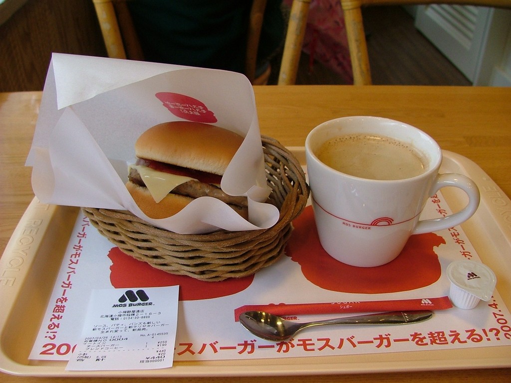 對面就係步行街. 落雨加上飢寒交迫, 就嚮步行街尾的 mos burger 食 lunch, 第一次食 mos burger, 又幾好食喎