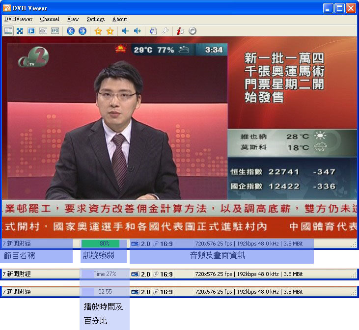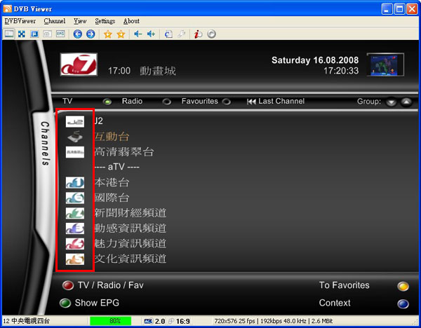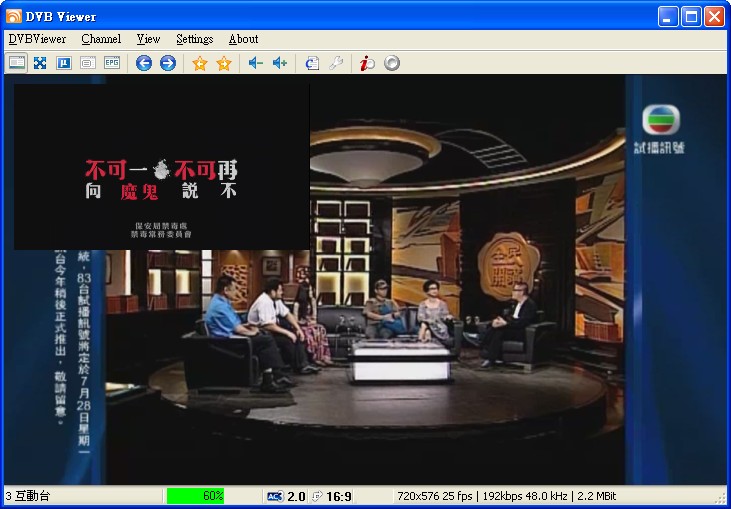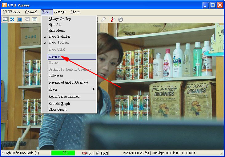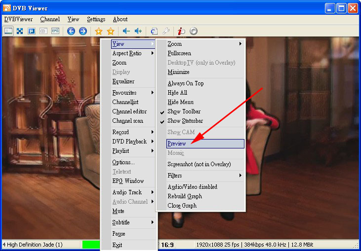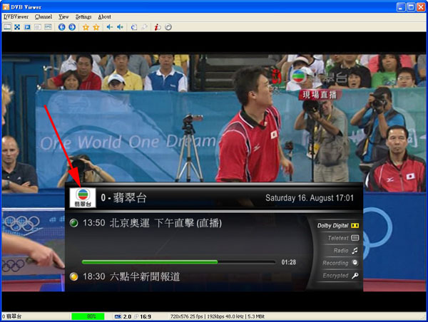 選取 Preview 後, DVB Viewer 先會播放同一電視台節目, 要轉台則點一下大果個畫面, 再同平時轉台一樣, 選擇第二個台