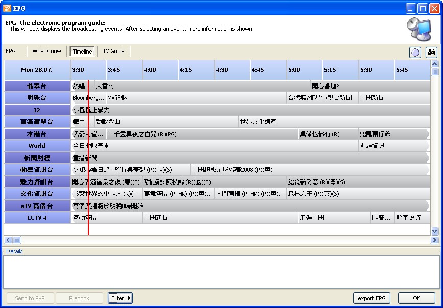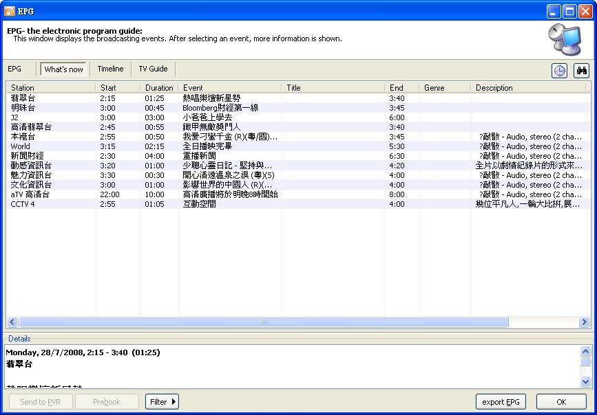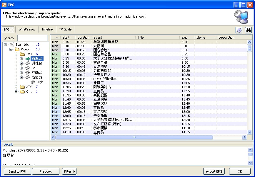 EPG 不同的顯示介面. 但唔知係DVB Viewer 問題定係電視台的問題, 有時某電視台o既EPG 資料會無故消失