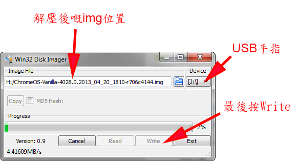 以USB boot 機的 Chromium OS需要 Win32 diskimager同埋 Chromium OS的 image 檔, 可以呢度下載 Download完並且將兩個檔案解壓, 用win32 diskimager 將 img 檔寫入USB 手指.
