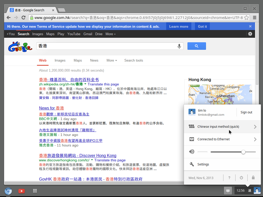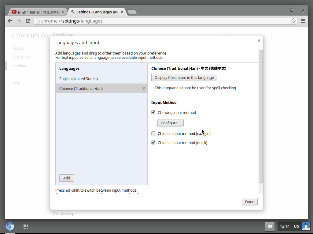 Chromium OS本身亦可打中文, 設定後就可以用如簡易嘅中文輸入法