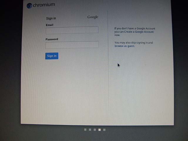 由USB boot機, 正式啟動 Chromium OS, 有Google A/C 可以登入, 又或者可以 Guest身份登入.