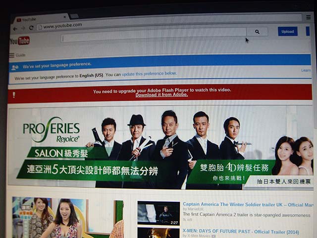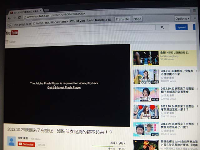 睇唔到Youtube, 話要更新Flash player (Hexxeh話因為license 問題, 其中flash係無加入佢嘅Chromium OS build 裡面)
