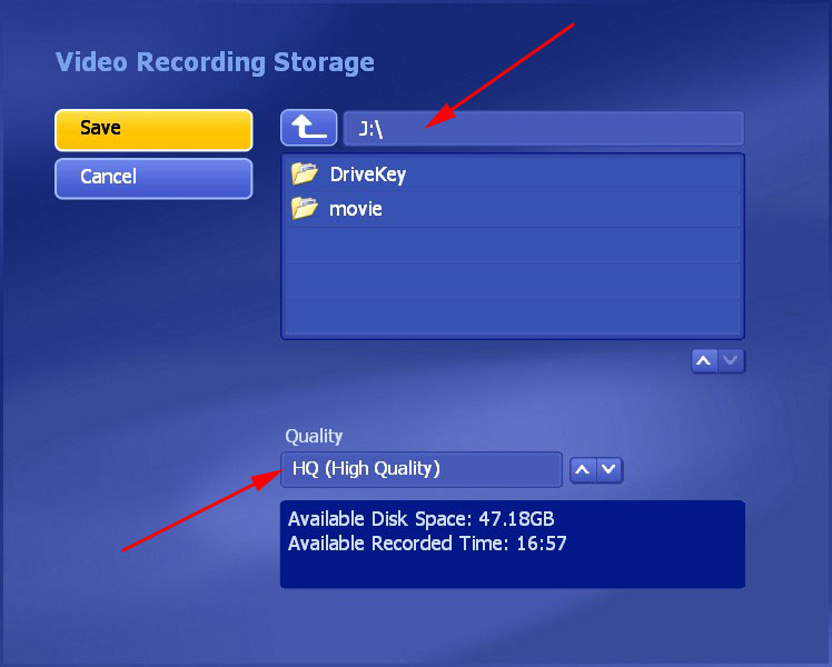 錄影儲存位置及質素設定, TM 儲存用的檔案格式係 MPEG2