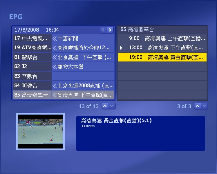 EPG 設計清晰, 不過要注意一點, 跟數碼手指 / PCI / PCI-E 卡的 TM 版本可能太舊, 唔能夠正確顯示中文台名或 EPG 資訊, 可下載一個 patch, 解決亂碼問題